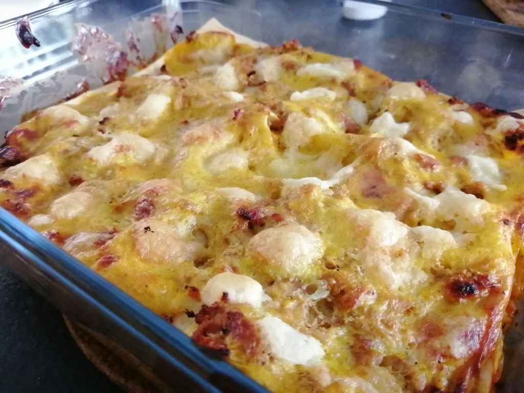 La béchamel au curry des lasagnes aux poireaux et au thon de Doro (http://www.lespetitsplaisirsdedoro.fr/lasagnes-aux-poireaux-et-au-thon/). Les lasagnes en elle-mêmes étaient très bonnes (personnellement, j’ai mis 6 feuilles de lasagnes au lieu de 9 et 600g de poireaux au lieu de 500 ; j’ai trouvé ça encore un poil sec, je n’hésiterai pas à faire encore plus de poireaux la prochaine fois). Bref, tout ça pour dire que cette béchamel est formidable.