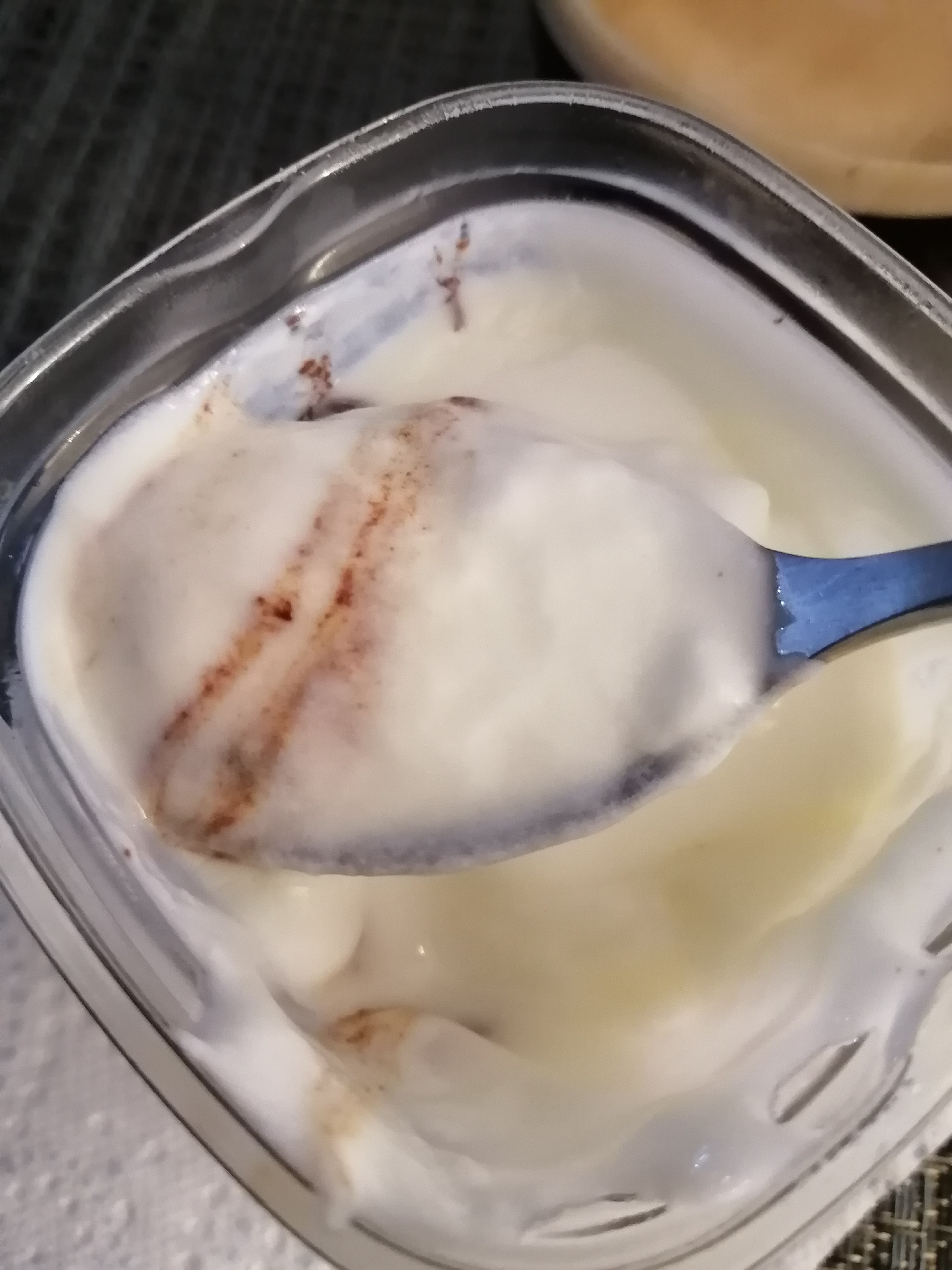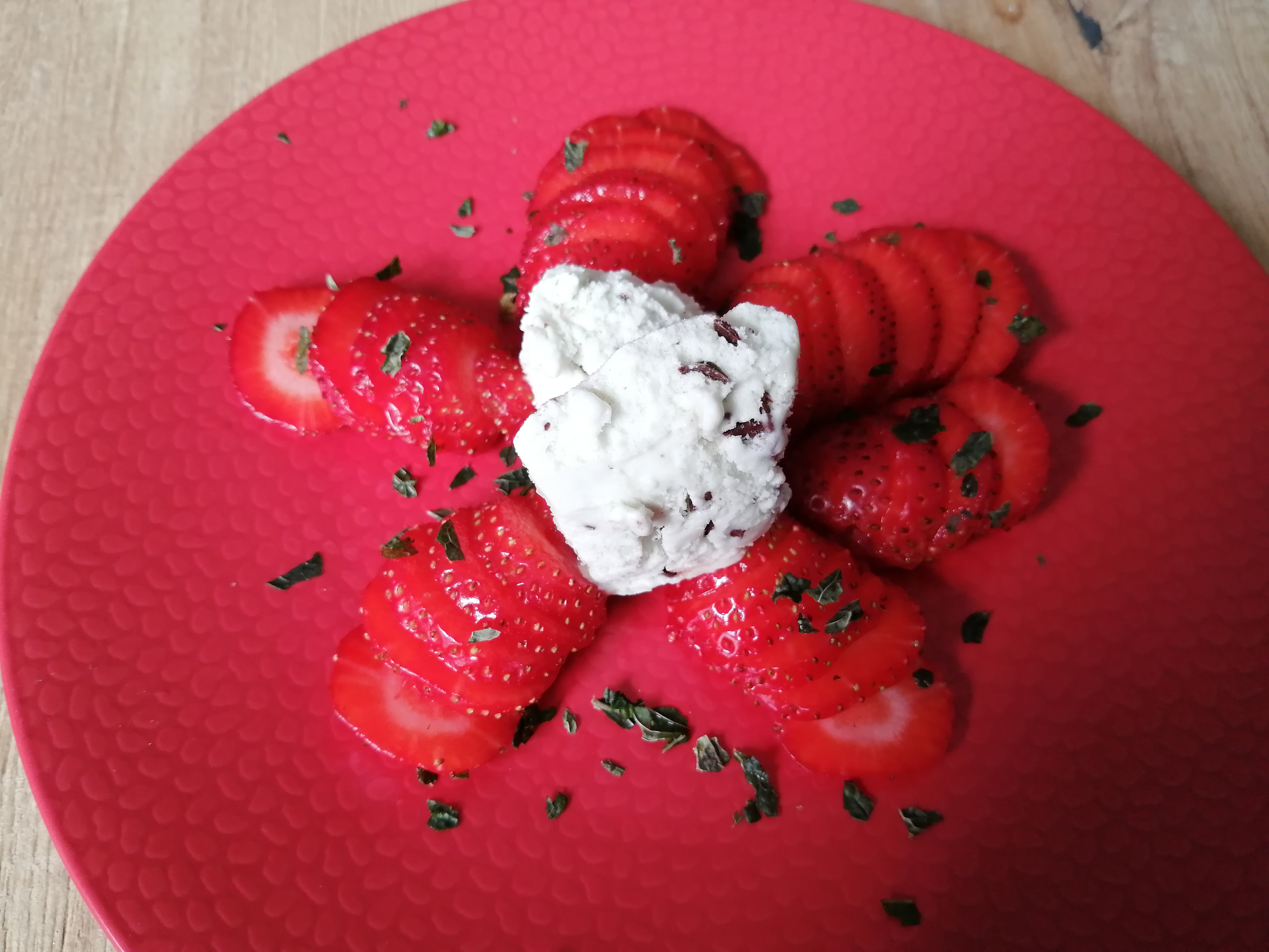 En dessert, du simple mais délicieux : une assiette fraise menthe avec un peu de glace menthe chocolat (Picard, merci pour cette glace peu chère en sp, 2 SP les 45g) et un yaourt maison avec un peu de pâte à tartiner au fond (Nocciolata cette fois ci). Pas de recette vu la simplicité hein mais je conseille !