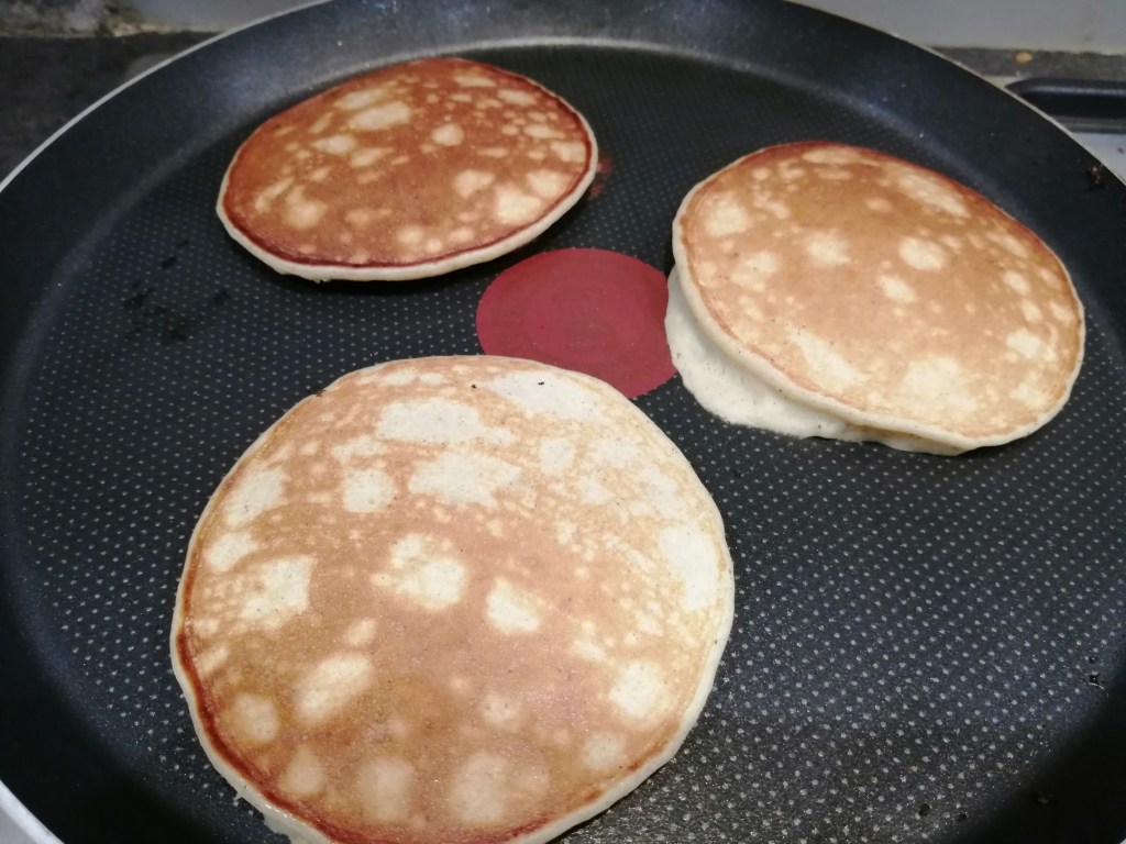 On écrase bien les bananes, on fouetté avec l’oeuf et le skyr et le miel. On mélange farine, levure et les épices en poudre et hop on ajoute en pluie en fouettant au mélange précédent.