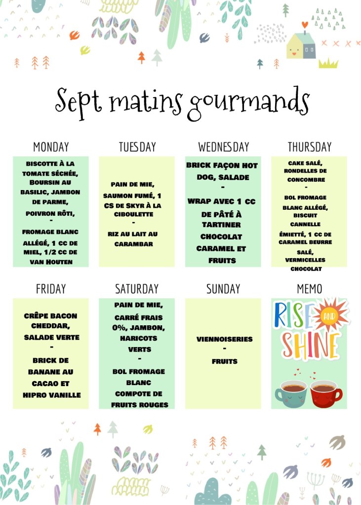 Pas de raison de changer une équipe qui gagne, alors je continue mes petits dej salés / sucrés et variés ! Voici le programme de cette semaine 🤗